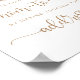 My thoughts on this product was excellent. Well printed in a gloss finishing and just the size l ordered. It arrived in good condition and am overall satisfied with the product. The printing turned out great. I was quite surprised with the finishing touch to the poster. The semi gloss was just right and a perfect size to display at the wedding.