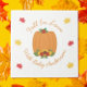Fall in love baby shower gifts with autumn sunflower and floral design, orange pumpkin and frame of maple leaves