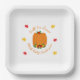 Fall in love baby shower gifts with autumn sunflower and floral design, orange pumpkin and frame of maple leaves