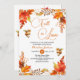 An elegant Baby Shower design with rust fall floral, maple tree leaves, acorns, elegant calligraphy and a 'fall in love' theme.