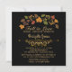 Elegant, fall season bridal luncheon wedding shower invitations in black and gold and classic fall colour leaves- Autumn leaves and berries design adorns the top in fall colours of red, brown, orange, golden yellow and green. Below reads 'Fall in Love Bridal Luncheon Honouring' with the bride to be's name below in matching gold, pretty script. Below her name is a chic, gold metallic look scroll divider. Bridal luncheon details below that in gold hued lettering, including RSVP and store registry details. Back has black background, which may be changed to any colour you prefer. In sophisticated, black and gold with stylish autumn accents.