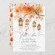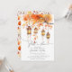 This bridal shower invitation features a beautiful branch with fall leaves and pretty hanging lanterns, making it perfect for a fall-themed shower. The invitation is simple and elegant, with a white background and black text. The branch with fall leaves and lanterns adds a touch of whimsy and fun, and the overall design is perfect for celebrating the bride-to-be's upcoming wedding.