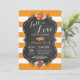 Fall in Love Bridal Shower Invitation Card with orange stripes background. For further customisation, please click the "Customise it" button and use our design tool to modify this template.