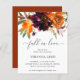 Rustic budget bridal shower invitation featuring the header "Fall in Love" along with a watercolor boho floral bouquet with warm and earthy shades of burnt orange, terracotta and deep burgundy along with some greenery. An elegant design with the rich shades of autumn perfect for a fall bridal shower. These cheap bridal shower invitations are printed on sheets of paper for a budget friendly option.