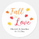Fall in love custom event gifts with red, orange and yellow autumn colour palette with maple leaves. Text can be customised for a wedding, bridal shower, baby shower or any other event