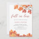 Customisable modern bridal Shower invitations, featuring a branch of a tree in fall and autumn leaves in tones of orange, rust, yellow and browns on a clean white background.