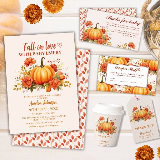 Fall in love Autumn leaves pumpkin baby shower Designed by Khushboo Asif