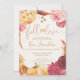 way to invite friends and family to a party! Card features a fall floral frame with pumpkin. Fall in love bridal or wedding shower invites also have a printed watercolor texture as part of the design.