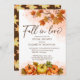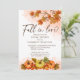 Fall in love autumn bridal shower invitation template instant download, brown yellow watercolor foliage and pumpkins modern script.