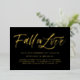Fall in love! Invite guests to your event with this customisable gold foil engagement party invitation. It features brush lettering and simple typography. Personalise by adding your event details. This black and gold engagement party invitation is perfect for fall or autumn engagement parties. Matching items are available.