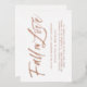 Fall in love! Invite guests to your event with this customisable rose gold foil engagement party invitation. It features brush lettering and simple typography. Personalise by adding your event details. This rose gold foil engagement party invitation is perfect for fall or autumn engagement parties. Matching items are available.