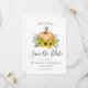 This modern design has a Fall vibe with its beautiful watercolor sunflowers and eucalyptus leaves around a pumpkin.