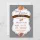 Fall in Love Pumpkin Baby Shower Invitation Card. Orange and Brown with gary background. For further customisation, please click the "Customise it" button and use our design tool to modify this template.