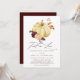 This bridal shower invitation features a watercolor yellow pumpkins adorned with burgundy, maroon, and burnt orange flowers over fall leaves. For more advanced customisation of this design, Please click the "Customise further" link. Matching items are also available.