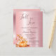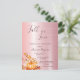 On front: A modern, elegant and simple Bridal Shower invitation for fall. A faux rose gold metallic foil background. Decorated with a golden pumpkin, foliage and som white flowers. Templates for the bride to be's name, date and place of the shower. The text: Fall in Love is written with a large hand lettered style script, dark rose gold coloured letters.