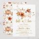 Fall In Love Rust Pumpkin Gold Cream Baby Shower Invitation. Rustic and elegant baby shower invitation featuring hand painted watercolor white pumpkins, fall leaves and flowers with golden "fall in love" wording and fall floral pattern in the back. Please get in touch via chat if you need customisation or matching items.