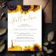 Modern yellow gold boho chic sunflowers and pumpkin Fall in Love bridal shower invitation with a trendy golden handwriting calligraphy script. +++++ Suitable for rustic country summer garden backyard farmhouse bridal shower parties.