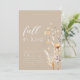 If you love simple boho style, this invitation is right for you. The invitation features an elegant design, with a soft, beige background. In the centre, the party details are beautifully scripted in a white text exuding an air of sophistication. On the right, soft fall autumn wildflowers gently sit off the side. Invite guests to your baby shower party in style. Background colour and text is editable.