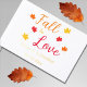 Fall in love custom event gifts with red, orange and yellow autumn colour palette with maple leaves. Text can be customised for a wedding, bridal shower, baby shower or any other event