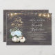 FALL IN LOVE rustic country white pumpkin dusty blue floral vase bridal shower invitations.
