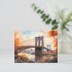 Capture the essence of fall in the city with this charming watercolor postcard showcasing the iconic Brooklyn Bridge amidst a vibrant autumnal backdrop. Perfect for travel enthusiasts, photography buffs, and lovers of all things NYC, this retro-inspired design celebrates the cosy beauty of the season in the urban landscape. Whether you're sending warm greetings to loved ones or adding a touch of seasonal style to your home, this personalised postcard is a wonderful way to embrace the changing leaves, the crisp outdoor air, and the timeless allure of the Big Apple. A lovely keepsake for Thanksgiving or any autumn occasion!