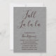 This Thanksgiving Dinner Invitation is accented with the fun quote, Fall la la la, on an illustrated grey linen background, making it a simple and elegant choice for Thanksgiving.