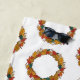 A hand-drawn autumn leaf wreath in warm amber, rust and jade, forming a circular frame. Rich, saturated palette and clean lines suit fall apparel and accessories.