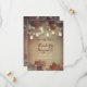 Rustic fall save the date invitation with burgundy maple leaves, mason jar lights and burlap decor.