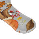Autumn woodlands themed cutting board features fox and badger with leaves and acorns on light grey background.
