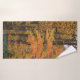 Pretty falll leaves in red orange and golden yellow in a forest of tall tulip poplar trees and green shrubs. Blue sky peeking through. Happy Autumn, Nature's Beauty., Fall leaves is written in yellow and orange script. Original Photography © TamiraZDesigns.