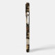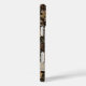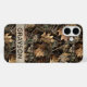 Customise this fall leaves camouflage iPhone 16 plus case with your name in a trendy modern CAP font in brown on opaque cream. It's masculine and perfect for your favourite military, hunting, country or outdoorsman!