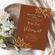 Celebrate your fall wedding with rustic elegance in these invitations featuring autumn leaves, rich fall foliage, and delicate simple floral accents. Accented with real gold foil, the design shines with timeless sophistication, while lush greenery adds a natural seasonal touch. The simple elegant calligraphy script pairs perfectly with classic wording, creating a refined yet warm aesthetic. Ideal for couples planning an autumn season celebration filled with rustic beauty and classic charm.