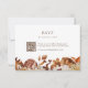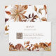 Fall Leaves Floral QR Code RSVP Card. This beautifully designed RSVP card makes responding to your wedding a breeze. Featuring a crisp white background adorned with hand-painted burnt orange and terracotta leaves, cream and beige dahlias, and copper and rust-coloured roses, it combines seasonal elegance with modern convenience. The included QR code offers a quick, digital way to RSVP. Make your guest list complete—add this stylish touch to your suite.
