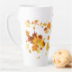 Ceramic coffee latte mug is shown with a pretty autumn fall leaves print.
