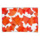 Printed with image of artistic, colorful orange maple tree leaf patterns in solid white background.