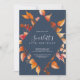 This fall leaves navy blue and burgundy 40th birthday invitation is perfect for an October birthday party. The modern rustic design features stunning hand painted watercolor autumn leaves in colourful shades of yellow, burnt orange, and burgundy red which pops on a navy blue background.
