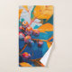 Fall leaves and rowan berry Hand Towel. Abstract modern autumn nature oil painted art in blue yellow orange colours.