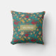 This darling throw pillow features a simple leaf and berries pattern on a dark turquoise blue background, with a light green text box for your own text. These would look fabulous on your sofa in autumn!
