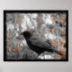 Crow in black and white except for the orange fall leaves. Copyright©Gothicolors All Rights Reserved.