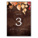 Fall Leaves | Rustic Brown Wood Table Number
