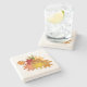 The coasters are gorgeous, a quality feel and heavy weight. They look like a precious archeological find. A rustic stone juxtaposed with a modern floral black and white print. I like the way the print goes slightly imperfect on the cut stone edges giving them a kind-of natural beauty.