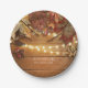 Fall Leaves & String Lights on Rustic Wood Paper Plate