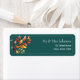 Add a charming autumn touch to your wedding stationery with this elegant return address label. Featuring watercolor fall leaves in warm orange and red hues on a rich teal background, it’s perfect for sealing your envelopes with style. Ideal for fall weddings, Thanksgiving invites, or rustic celebrations, and easy to customise with your names and address.