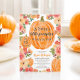 Celebrate the upcoming arrival of your little one with this adorable fall Halloween pumpkin baby shower invitation! Featuring a hand-painted watercolor pumpkin as the centerpiece, this invite radiates warmth and charm. Surrounding the pumpkin are beautifully illustrated autumn florals in shades of orange, red, and green, creating a delightful seasonal backdrop. The playful script "A Sweet Little Pumpkin is on Its Way!" adds a whimsical touch, perfect for welcoming your guests to the festive occasion. Personalised details about the event are elegantly displayed below, making this invitation a perfect blend of rustic charm and seasonal joy.