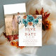 This Fall Teal Burnt Orange Botanical Floral Wedding photo save the date captures the essence of autumn with a boho botanical floral border featuring watercolor roses and wedding foliage in the rich, warm tones of teal and burnt orange. The inviting design is complemented by a pale watercolor texture, evoking the crisp air and golden hues of fall. Ideal for couples planning a rustic, garden wedding, or an intimate backyard celebration, this invitation suite perfectly reflects the cosy and romantic atmosphere of the autumn season, blending romantic artistry with elegant simplicity for any venue.