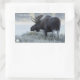 Photo by: Hugo Kitching. Male moose stands on edge of misty lake, in early autumn frost. Location: Maligne Lake, Alberta_x000D_