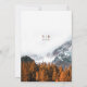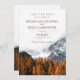 This save the date card is perfect for fall themed mountain wedding. The design features rustic terracotta forest trees and snowy mountains on the back.