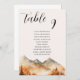 Add a touch of rustic elegance to your reception with this Fall Mountain Wedding Table Number, thoughtfully designed to complement autumn-inspired celebrations. Featuring a scenic mountain backdrop and warm fall foliage, this design was inspired by the breathtaking beauty of nature during the changing seasons. The earthy tones and natural textures create a cosy yet sophisticated atmosphere, making it the perfect detail for outdoor weddings, lodge receptions, or rustic barn celebrations.