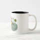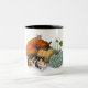 A delightfully whimsical fall mug with pumpkins, a mouse and colourful cat