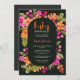 Boho fall pink, orange floral script gender neutral baby shower invitation featuring pretty hand painted pink, orange and green colours with a round mask. Perfect for fall boho themed baby shower party. With a modern script typography with dark off black green.